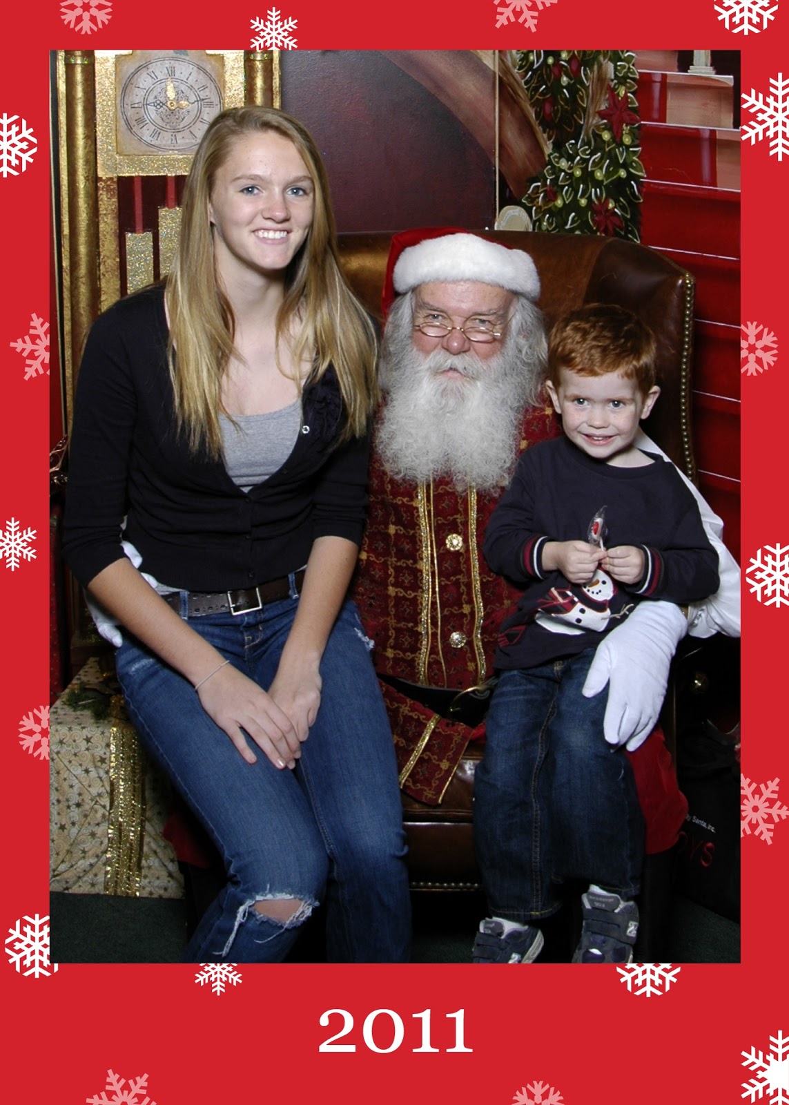 Dillyn went with us...which was a lot of fun...and she's such a good sport she even took her turn on Santa's lap! :)! Jack is happier here because Santa had already handed out the lollipops! :)!
